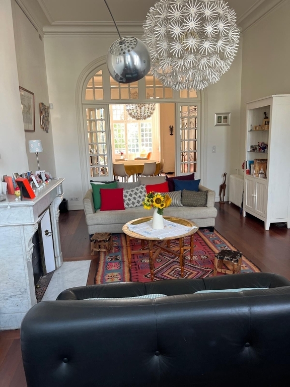 On the ground floor (130 square meters): isolated entrance hall, living room, dining room, second lounge and big kitchen opening on a green and sunny garden (South West side), a bedroom and toilet. On the first floor (130 sm) : four bedrooms (3 beds 140x200, 1 bed 140x190), four bathrooms, toilet, a playroom and the laundry. On the second floor are our office and the attic (which might be closed during your visit). In the basement : a big cellar. Our house has very good thermal and acoustic insulation : its high ceilings, 3,90 m, keep it cool, even in summer !