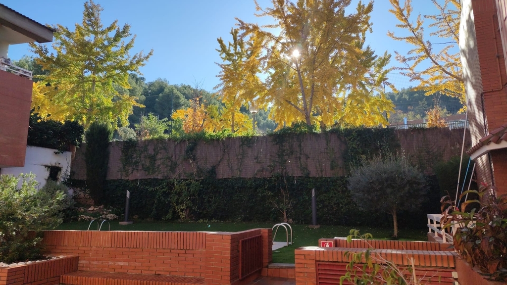 We have a little terrace on the top floor. We share the swimming pool with other 9 families in the community area.