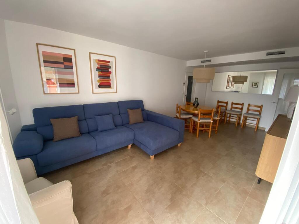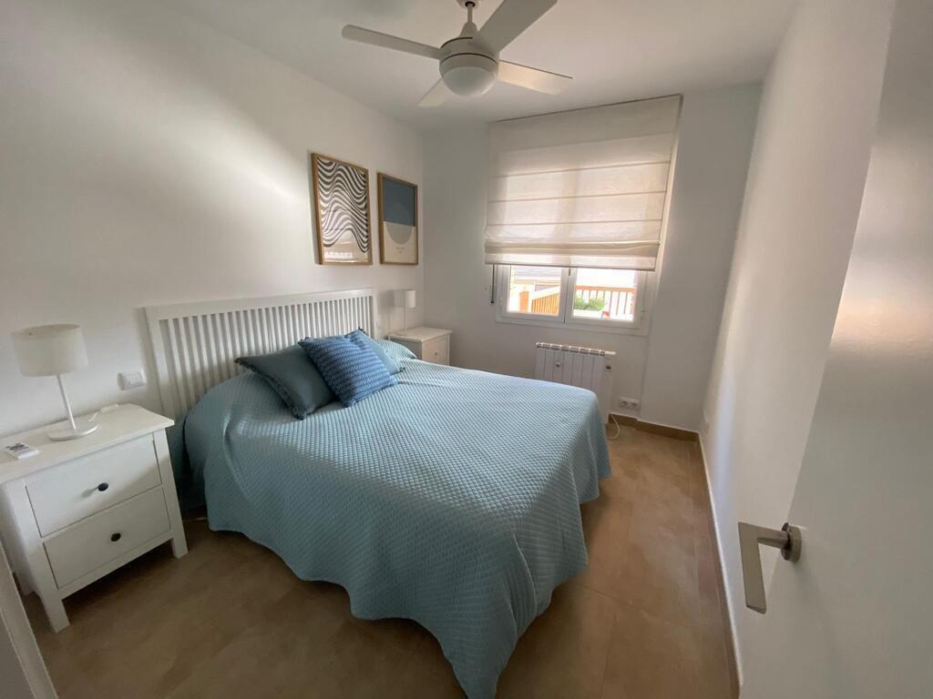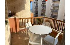Apartamento de tres habitaciones (matrimonio, doble con dos camas e individual con litera y cama de arrastre), dos baños y cocina independiente. Terraza con vista lateral al mar. Ascensor y plaza de párquing cubierta. Muy tranquilo. Sol de tarde.
