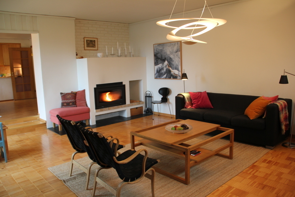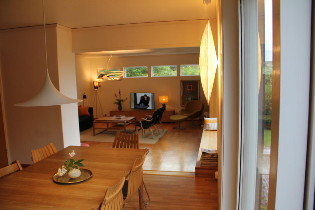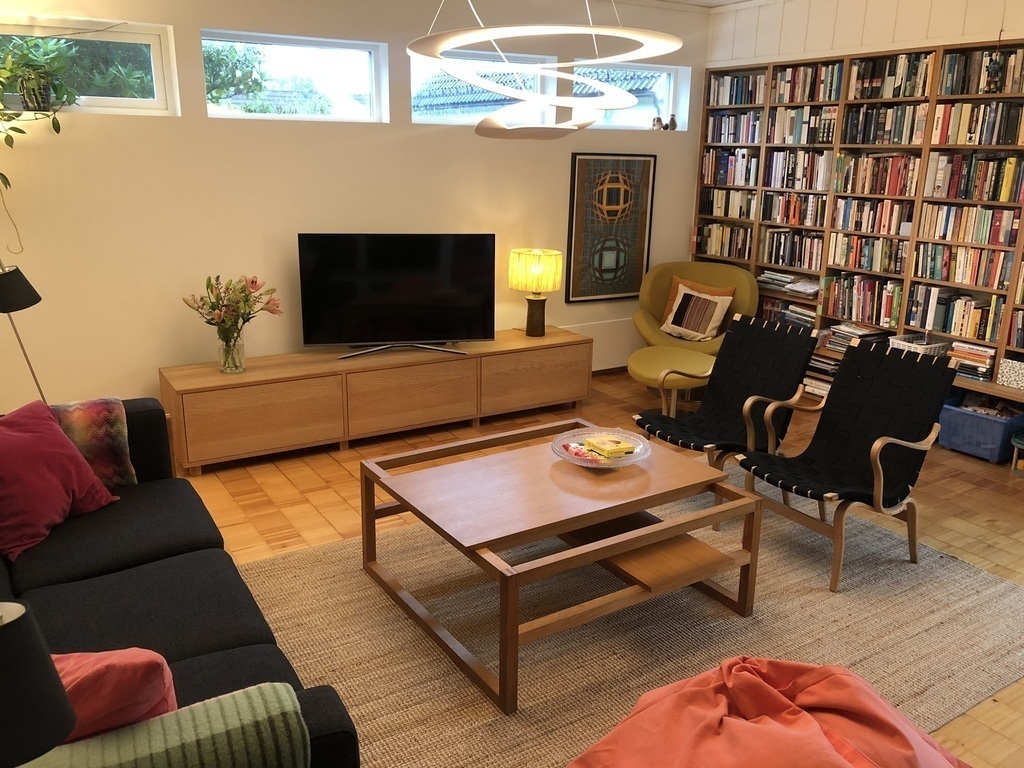 Our house is a modernistic house from the '60s, and we are renovating little by little, while trying to keep the original qualities. The area where we live is famous for many villas by early 20th century modern architects, and the area is actually called Paradis. The house is situated 400 m from the city light rail that will take you to Bergen centre or the airport in 20 minutes, and directly by a bus stop. The nearest centre is 5 min by light rail (or 9 min by bike) away.