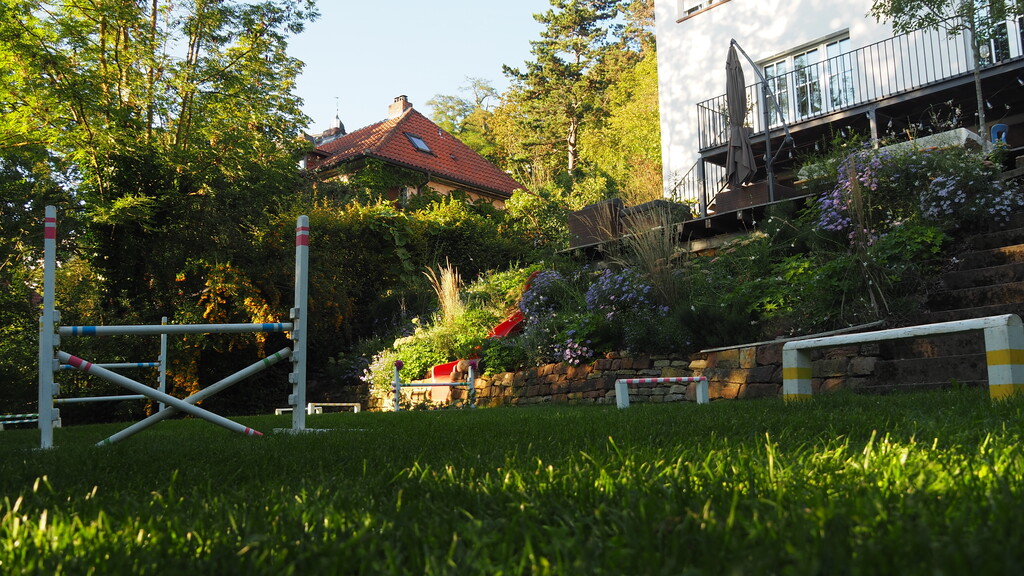 Unser 2000 m² großer, terrassenartig angelegter Garten wurde von 2020-2022 komplett umgestaltet und bietet schattige Bäume, verschiedene Sitzecken, Spielmöglichkeiten und viel Platz zum Toben und Entspannen.