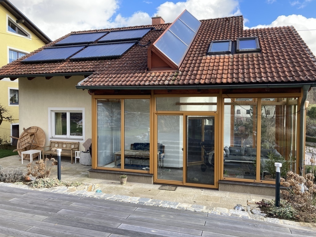 Wir bieten unser Haus in Oberösterreich mit Wintergarten und großem Garten zum Tausch an.