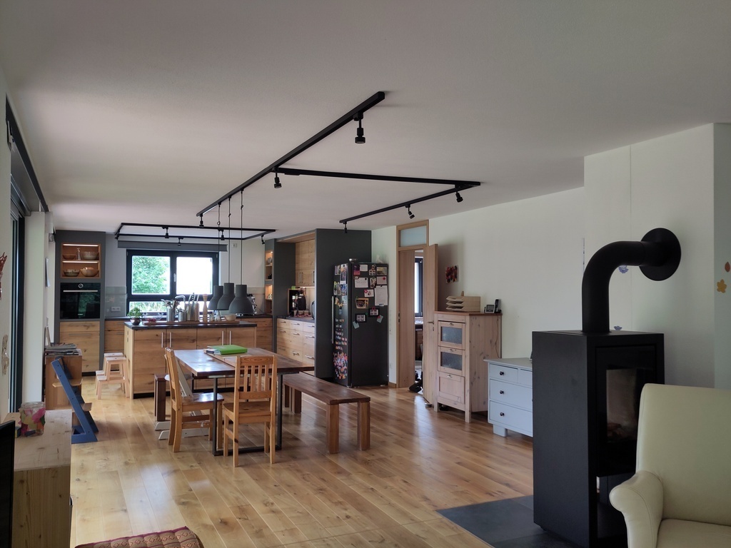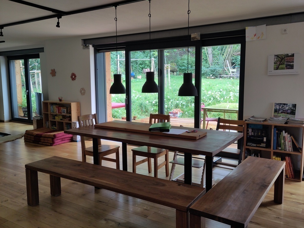 Our home is a newly renovated house with focus on ecological materials. We have a good living climate and a family can feel well in our house.