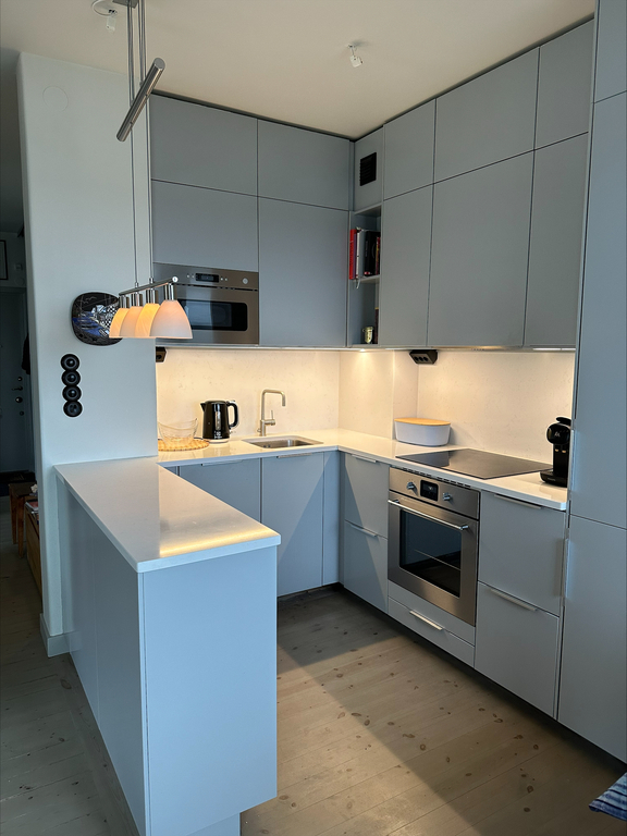 Alma and Erik's apartment is bright, airy and tastefully decorated. The view is fantastic and gives a wow feeling. The location in the city but still so close to nature is surprising, providing opportunities for rock swimming, nature walks, animal experiences, harbor and garden experiences, while the inner city with restaurants, culture and entertainment is barely further away than a stone's throw.