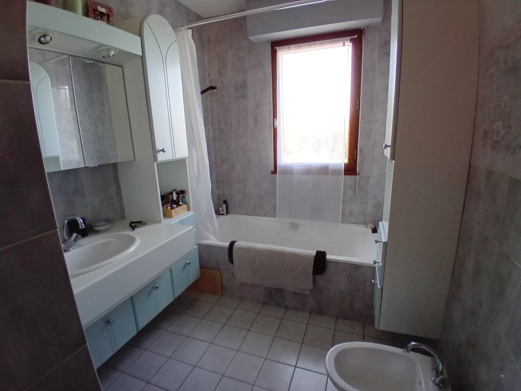 The ground floor has the living room, a bathroom, the kitchen and a bedroom. The first floor has 3 bedrooms (each with a double bed) and an another bathroom.