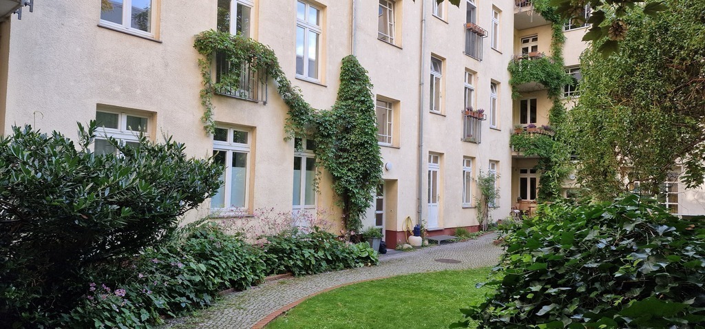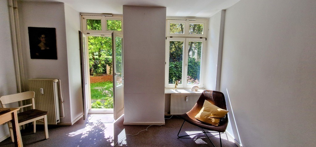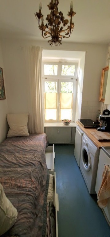 Friedrichshain is an exciting, young district in the centre of Berlin. Our flat is located in a quiet street in the courtyard, which is more like a garden and is tended by three generations of residents. A large room, a small bathroom (shower only) and a small kitchen provide comfortable accommodation for 1-2 people.