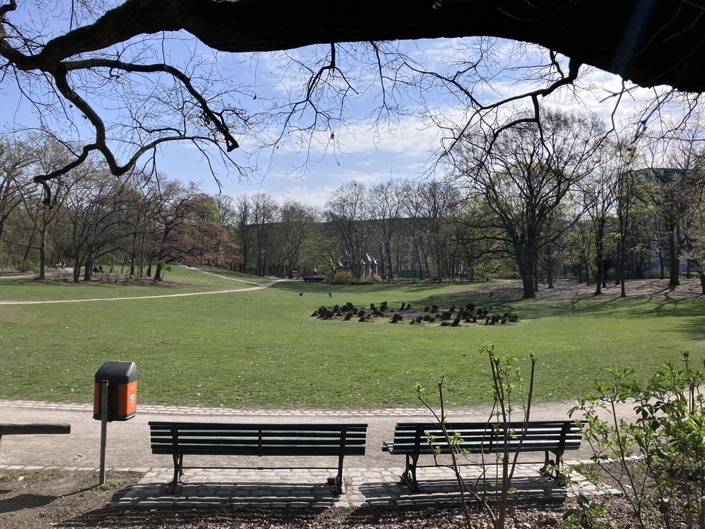 Eine große Altbauwohnung in einer ruhigen Wohngegend direkt am Rathaus Schöneberg. Vor der Tür beginnt der Volkspark Schöneberg/Wilmersdorf, ideal zum Entspannen oder Joggen (der Park ist 3 km lang), mit großartigen Kinderspielplätzen, Fußball- und Basketballcourts und Minigolf. Zu Fuß ist man binnen Minuten in einem lebendigen Viertel, hin zum "Akazienkiez", mit Cafés, Eisdielen und coolen Modeläden. Sehr gute öffentliche Verkehrsanbindungen: U-Bahn (U 4 "Rathaus Schöneberg"), S-Bahn ("S-Schöneberg"), S-Bahn-RIng ("S Innsbrucker Platz" mit S 41, S 42, S46), die Busse M 48 und M 85.