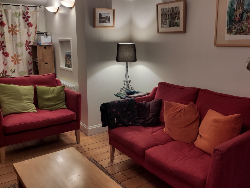 Our home is well furnished, with a large modern kitchen, two living rooms, two double bedrooms and a single bedroom, and two other rooms suitable for home working. We have a small garden with a table and chairs for eating and relaxing outdoors.