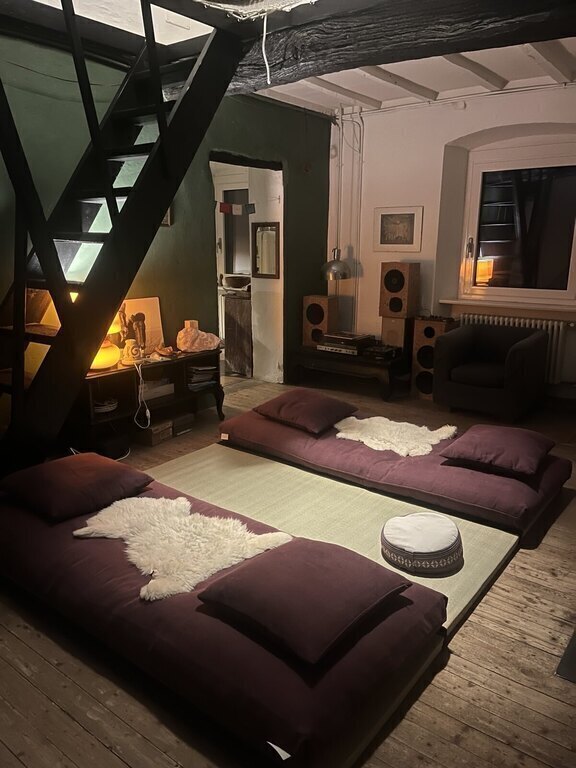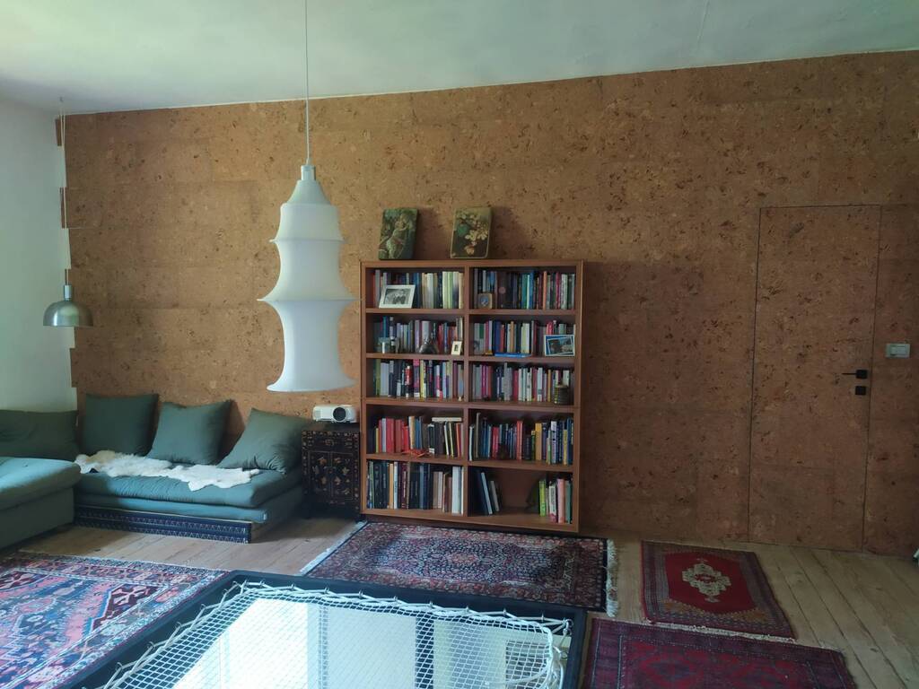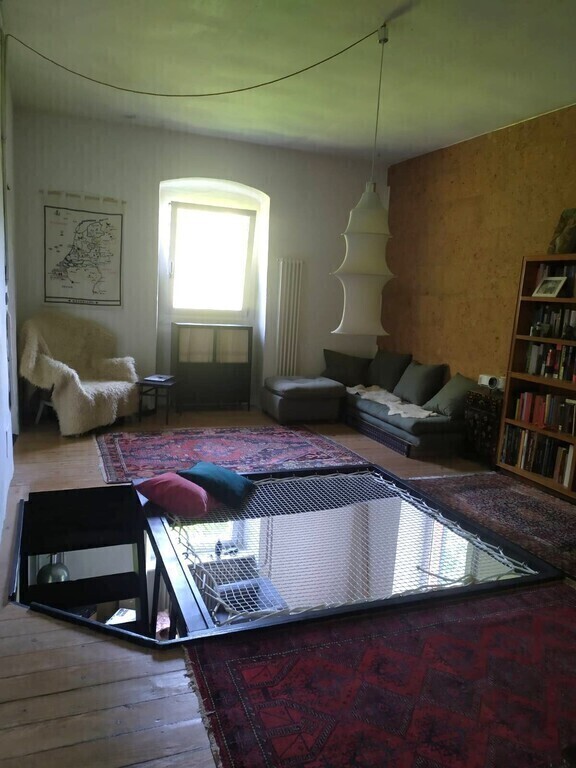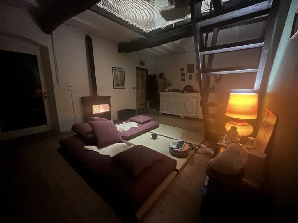 The house is a three-story house: the ground floor is a basement / work place / storage room. On the first floor you find the main entrance to the house, a big kitchen, living room with wood stove and a bathroom (with washing machine and dryer). On the second floor there's a sitting area / cinema area (we have a projector), two bedrooms and another bathroom.