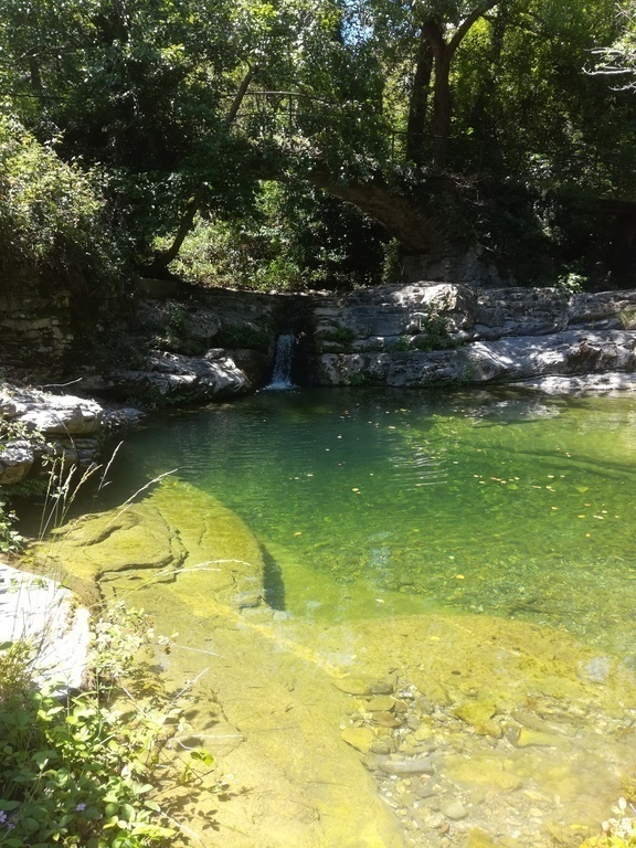 We live in a closed valley between the first hills behind the coast. Our house is right next to a little river with natural pools. We have a big garden of about 5,000 square meters. The nearest neighbors are about 100 - 200 meters away and so is the parking place. The house can't be reached by car, there's a (steep!) path that goes down from the parking place. Behind our house there's a forest that runs for kilometers. We therefore share our territory with lots of wild animals. At dawn you might be greeted by a concert of hundreds of birds.