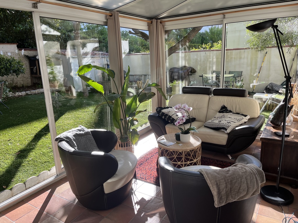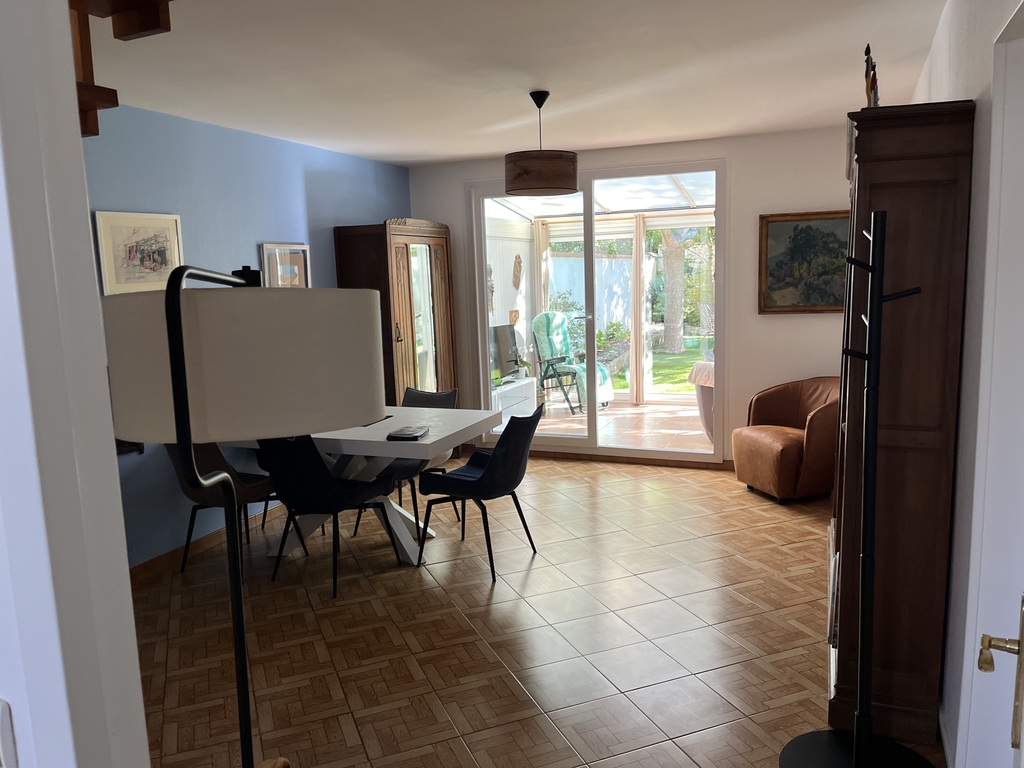 Our house has 4 bedrooms( 2 bathrooms with restroom ( with washing machine and dryer machine), a living room with ( A kitchen with dishwasher) A small Garden( with trees, barbecue.). The house is open over a very nice véranda